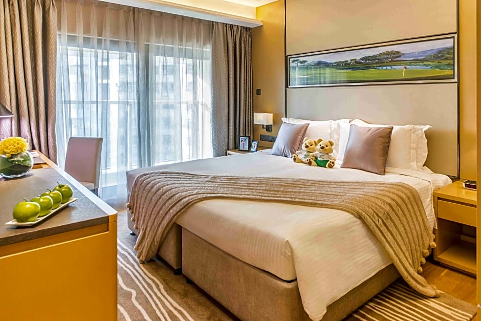 An expansive 89 sqm, the 1-Bedroom Executive apartment offers living and dining space, separate bedroom, kitchenette, bathroom and a balcony overlooking the metropolis of Shenzhen. Apartments are also fitted with a workstation in the bedroom, an private bathroom with eco-friendly amenities, LCD television in both the bedroom and living room, washing machine and dryer, and individually controlled air conditioning and heating. Kindly note the breakfast-included price includes breakfast for 1 person only.